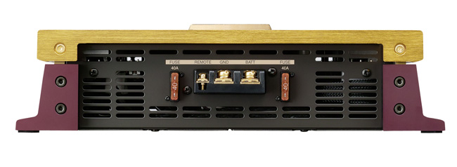 | 付属装置 | RCA入力端子、スピーカー出力端子、リモート端子、グラウンド端子 バッテリー端子、ヒューズ、レベル調節ボリューム(LR独立) インジケーター(OPERATION:青、PROTECTION:橙) |